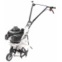 Motozappa a scoppio, equipaggiata da motore GGP 100 OHV, 100 cc di cilindrara. 4 rotori per un'ampiezza operatuva di 36 cm. Modello dotato di una vite senza fine e cinghia di trasmissione in bagno d'olio. Impugnatura regolabile in altezza.